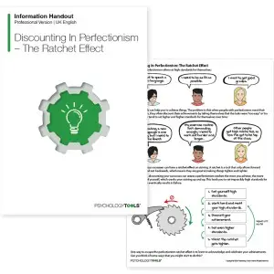 Cuando las personas con perfeccionismo cumplen con éxito sus exigentes estándares, estos logros a menudo se descartan como fáciles de lograr, sin gran importancia o con margen de mejora. Como resultado, hay un poco de satisfacción por estos logros. Esto refuerza la necesidad de esforzarse y lograr logros para mantener una autoevaluación positiva, lo que lleva a los individuos a establecer estándares aún más altos para sí mismos. En consecuencia, es probable que las personas perfeccionistas establezcan estándares cada vez más exigentes. En ingeniería, los trinquetes son dispositivos útiles que permiten el movimiento hacia adelante, pero no hacia atrás. El Descuentos en el perfeccionismo: el efecto trinquete El folleto ilustra el sesgo del descuento con referencia a una metáfora del trinquete.