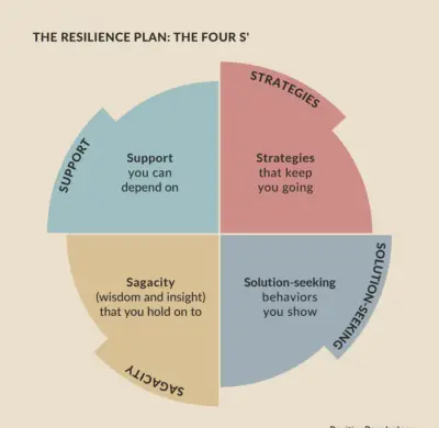 El Plan de Resiliencia: Las cuatro SLas Cuatro S de la Resiliencia es una herramienta que permite a las personas aprovechar las fuentes de resiliencia que han utilizado en el pasado y crear un plan para afrontar la adversidad en el futuro.
