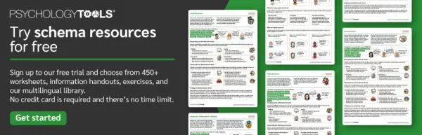 Puede probar hasta 5 recursos de forma gratuita cuando configura una prueba gratuita de Psychology Tools. Elija entre 450 hojas de trabajo, folletos informativos y ejercicios, incluidos recursos de la serie de esquemas.