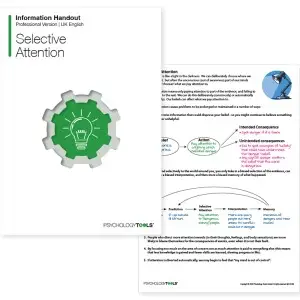 La atención selectiva puede conceptualizarse como un proceso (mecanismo) de mantenimiento dentro de la TCC. Los sesgos en la percepción pueden conducir a sesgos en el procesamiento de la información de las emociones negativas. Este folleto informativo explica la atención selectiva y su papel en la terapia cognitivo-conductual (TCC).
